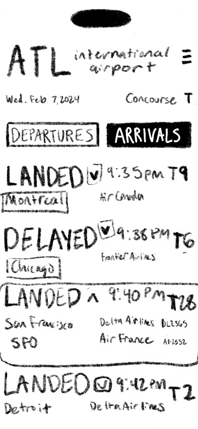 Design the app interface of the Hartsfield-Jackson International Airport in Atlanta, Georgia. Basic flight information for the departures and arrivals and information about the airport itself were important