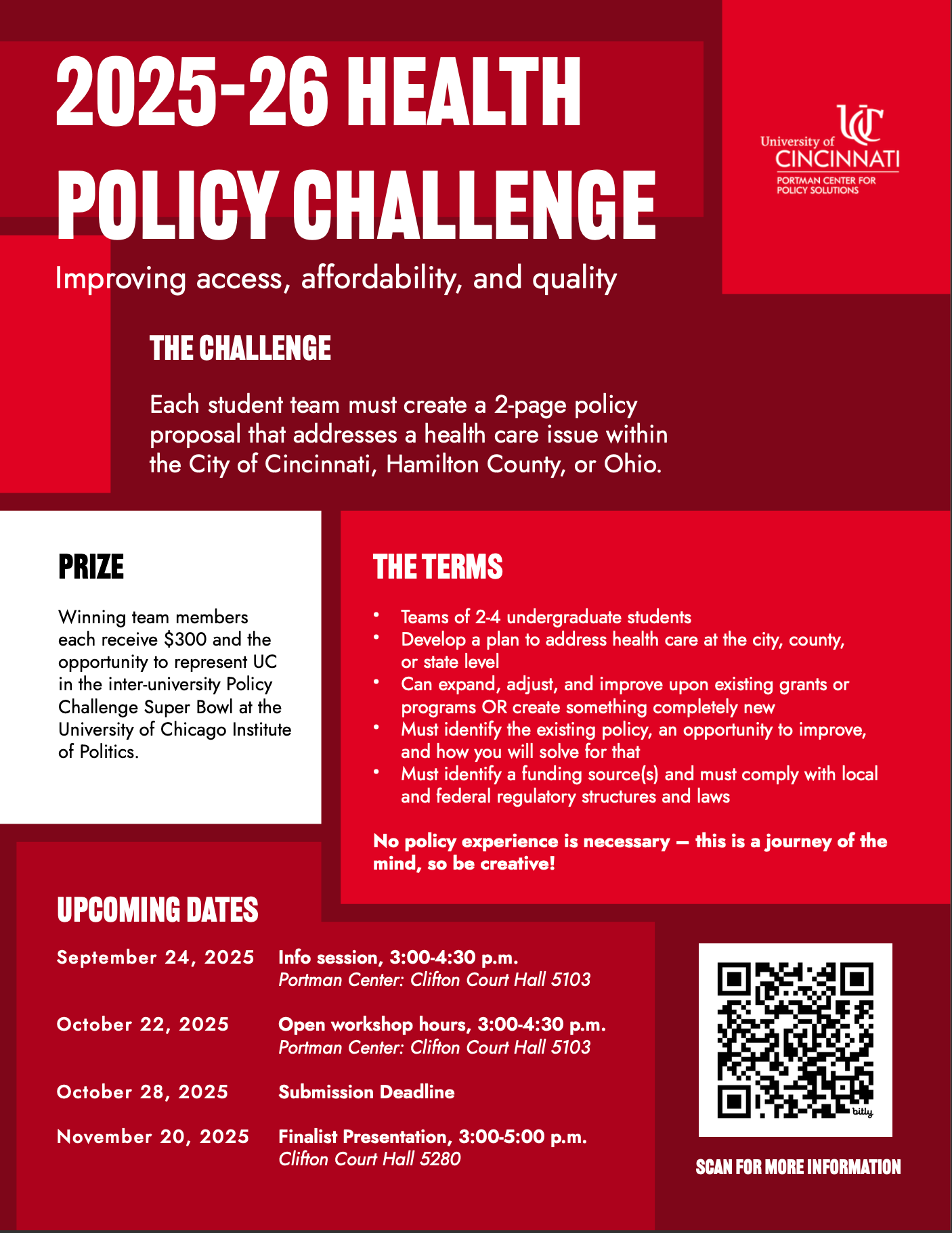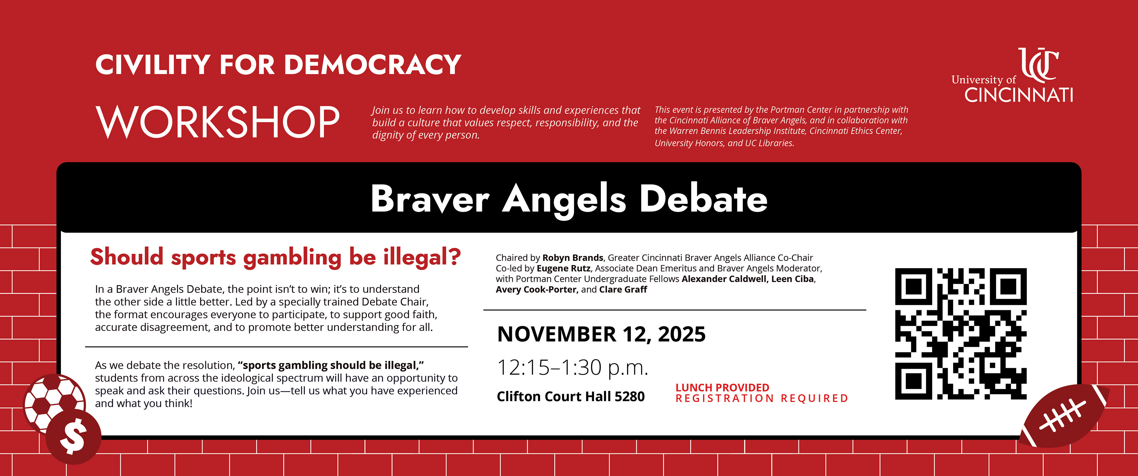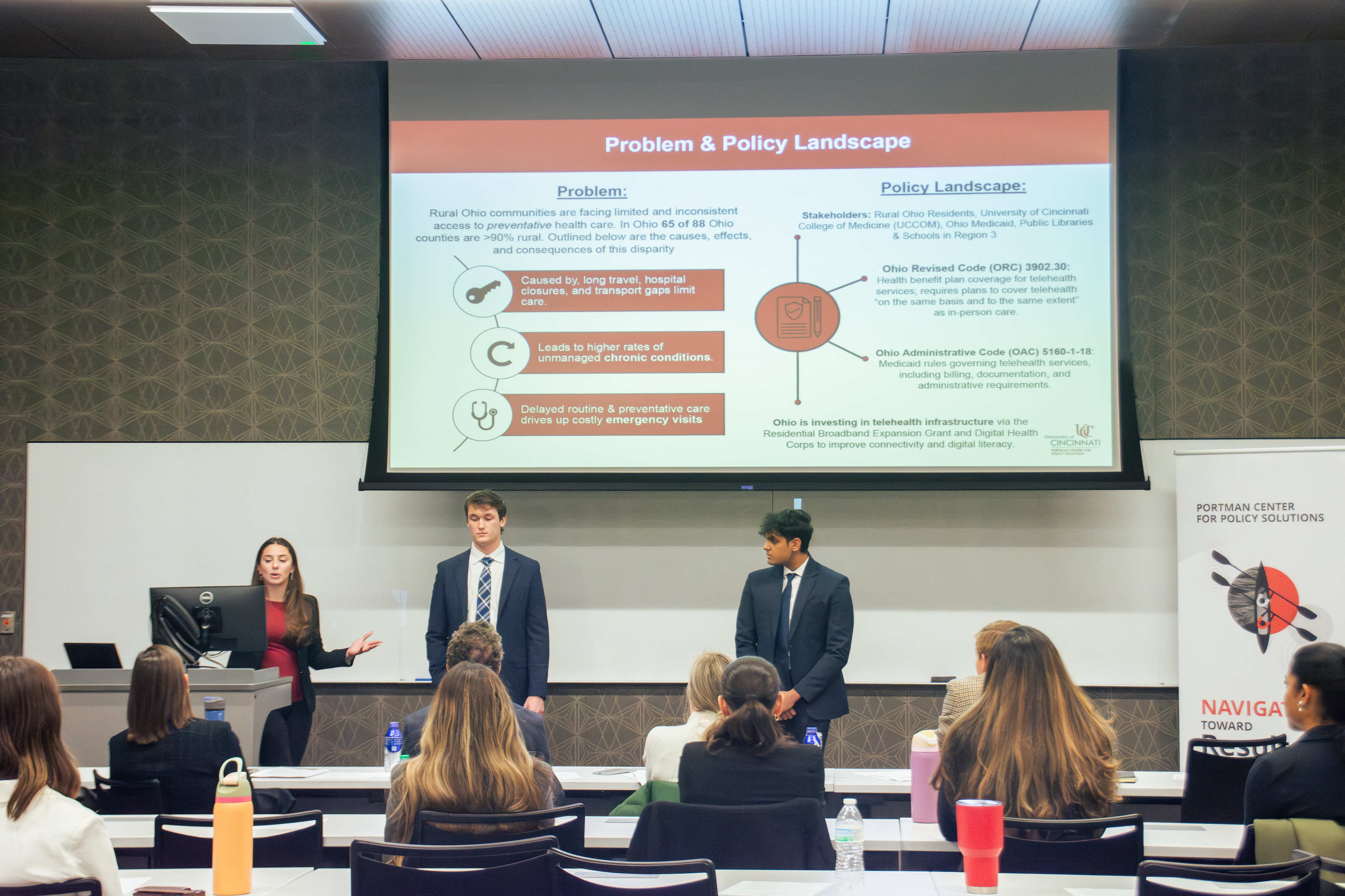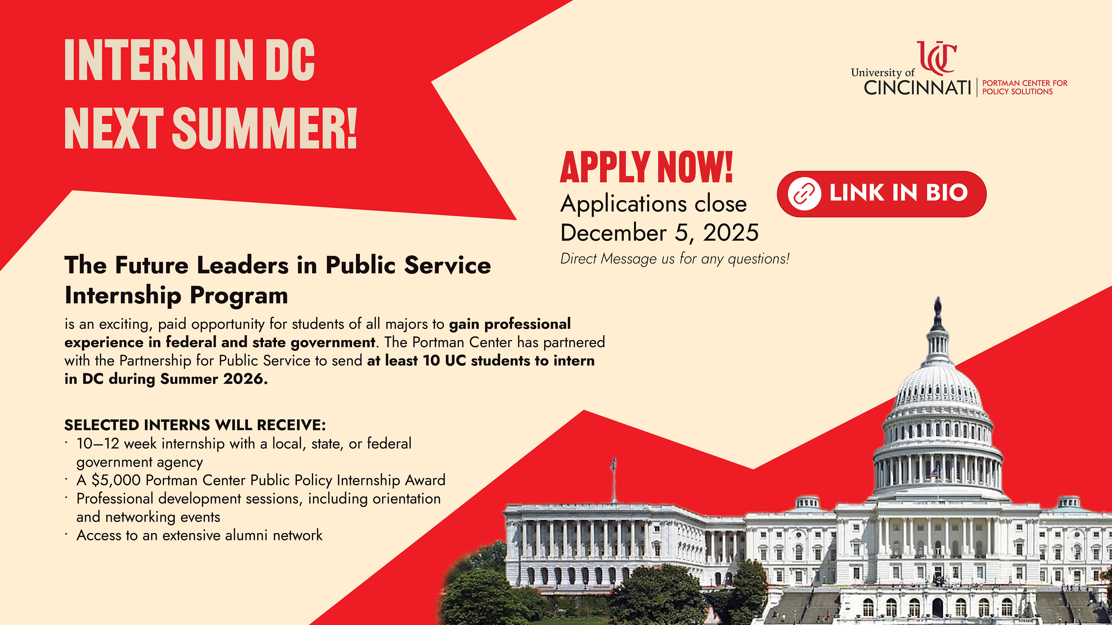 The Portman Center for Policy Solutions' mission is to encourage civility, bipartisanship, and finding common ground to achieve policy solutions. They do this by hosting public panels and speaking events for various government officials, workshops about civility, and funding students interested in public policy, law, or other fields through an earned Fellowship or other stipend programs.